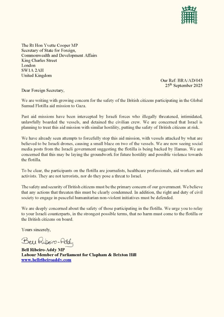 I am a signatory to a letter to the Foreign Secretary about the safety of those on board the Flotilla.