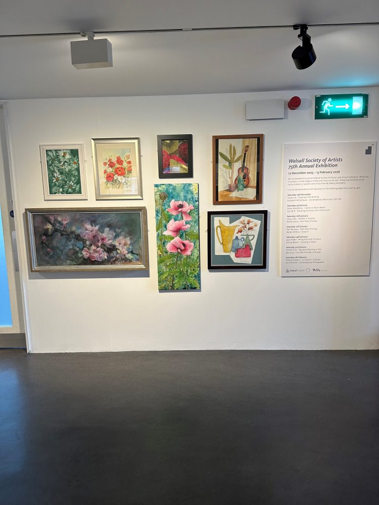 The Walsall Society of Artists was founded in 1949, with the aim to “help in the work of beautifying the town”. The Annual Exhibition is open until 15 February 2026. I encourage you to visit the exhibition on the ground floor of the New Art Gallery where you can also vote for your favourite work of art.